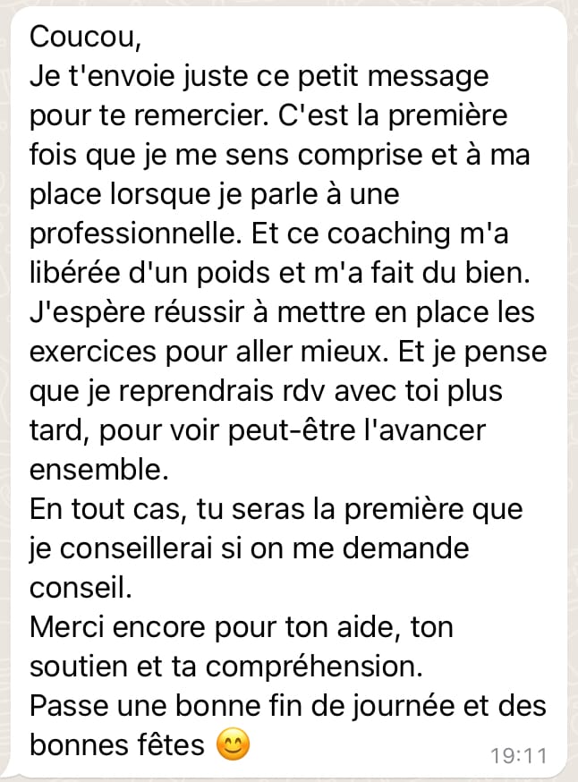 Tu repars avec des prises de conscience concrètes et des réponses adaptées à TA situation.