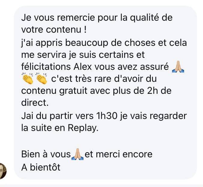 Tous les lives sont enregistrés et disponibles en replay dans ton espace de formation.