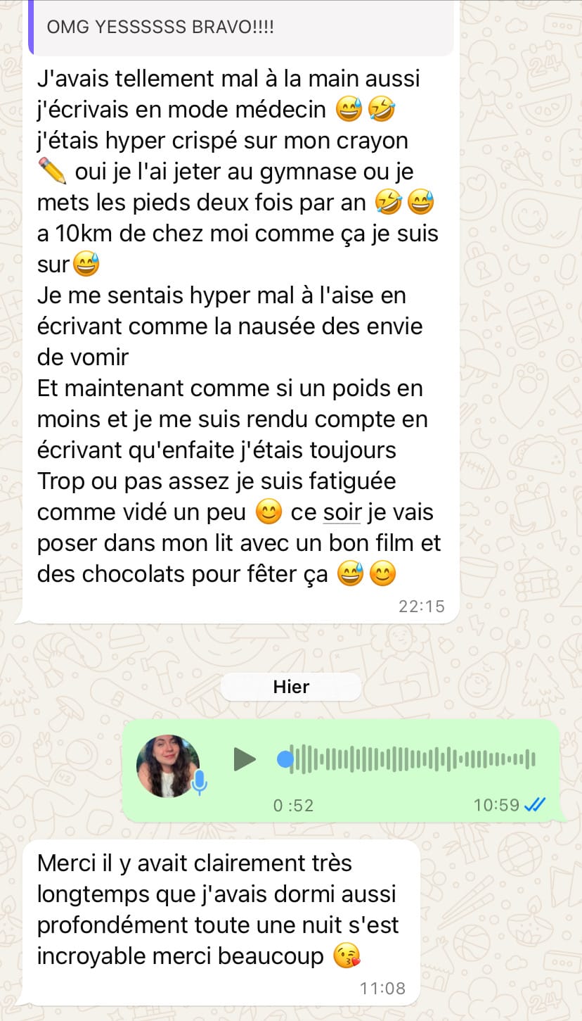 Tu peux partager tes prises de conscience, tes challenges, tes victoires et recevoir du soutien.